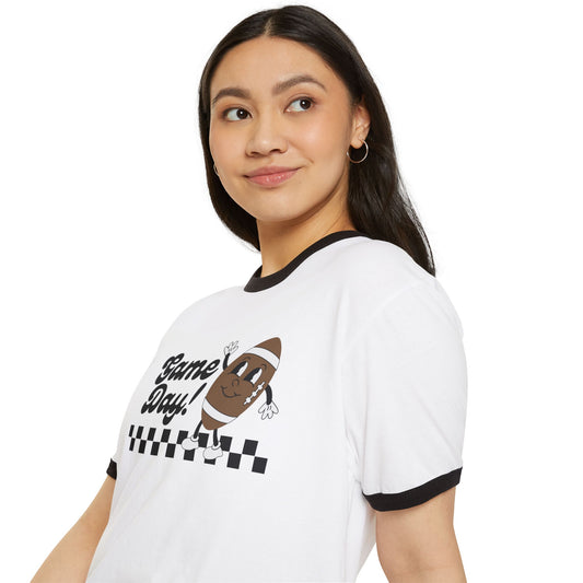 Retro Game Day Football T-shirt Unisex Cotton Ringer T-Shirt Vintage Sports Graphic Tee Fun Game Day Shirt for Men and Women