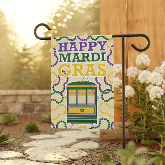 Happy Mardi Gras Garden & House Banner Street Car