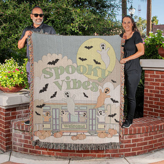 Spooky Vibes and Street Car rides - Pastel Blue - Woven Blanket