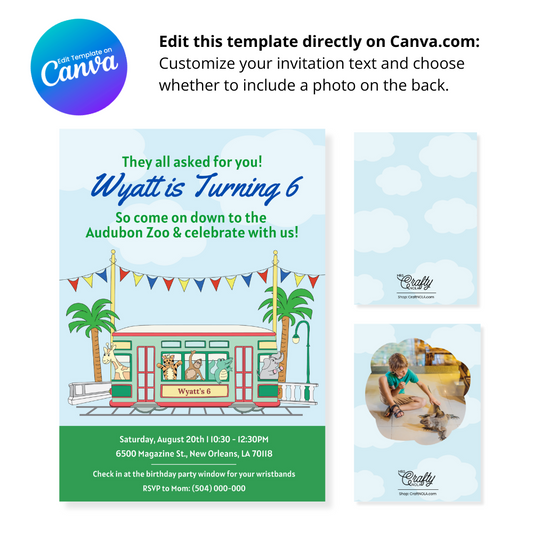 Streetcar Birthday Invitation - Canva Template - Audubon Zoo Party