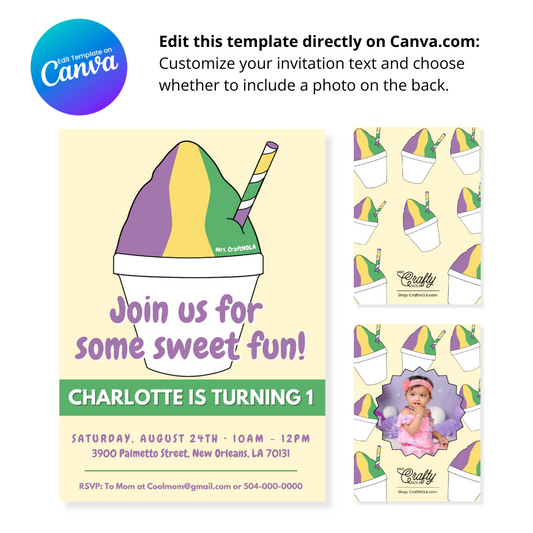 All prints are designed by Mrs. CraftyNOLA herself and are available as ready-to-use downloads or editable Canva templates for your custom party needs.