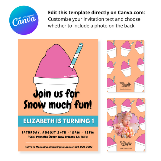 Pink and Orange Snowball Birthday Invitation - Canva Template