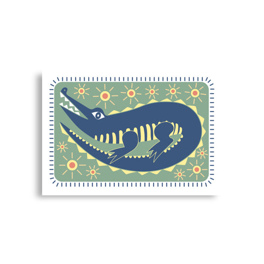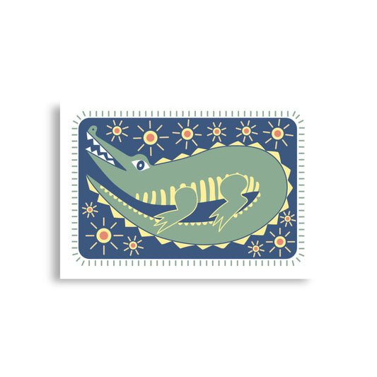South West Alligator Print Poster - Green, Blue Yellow, Red