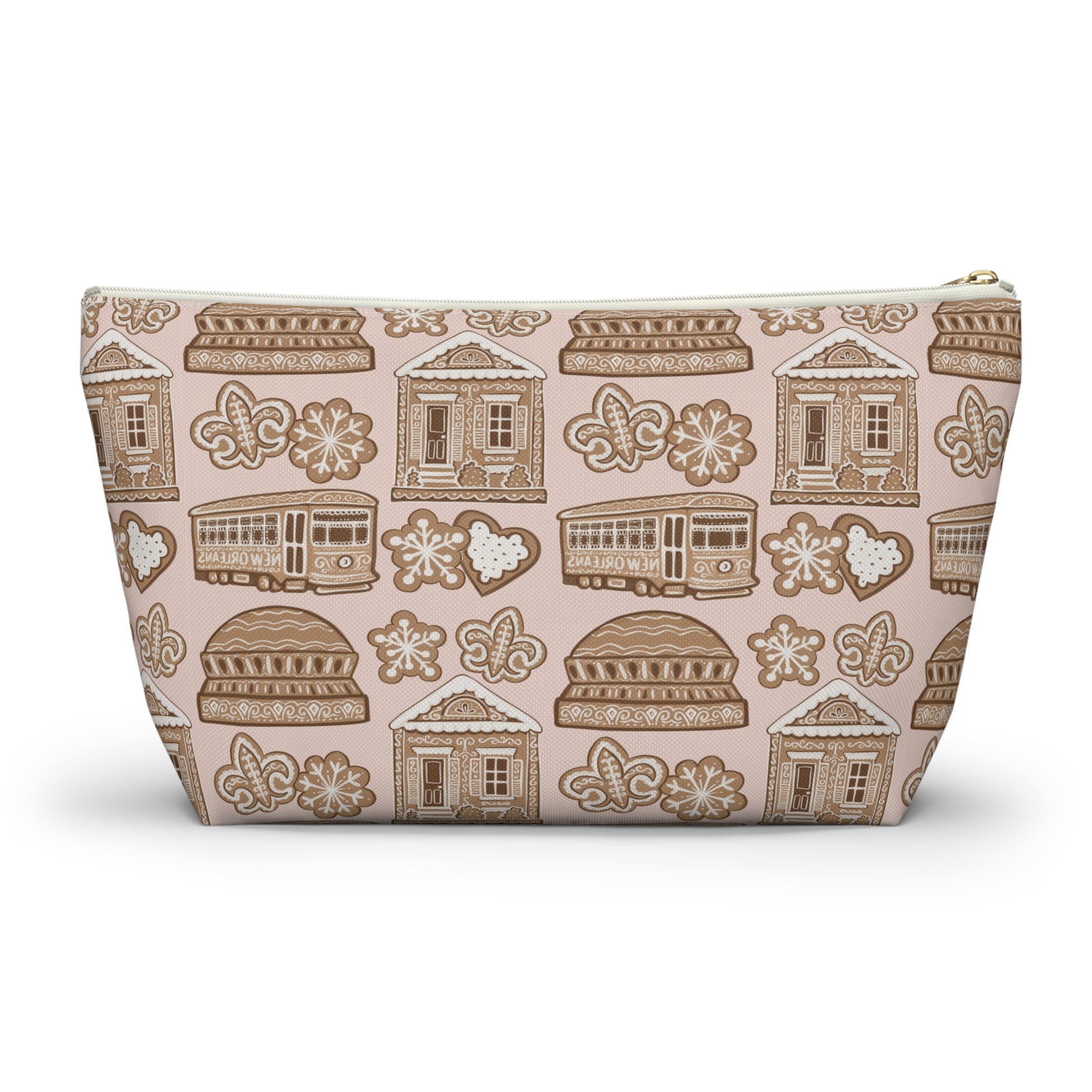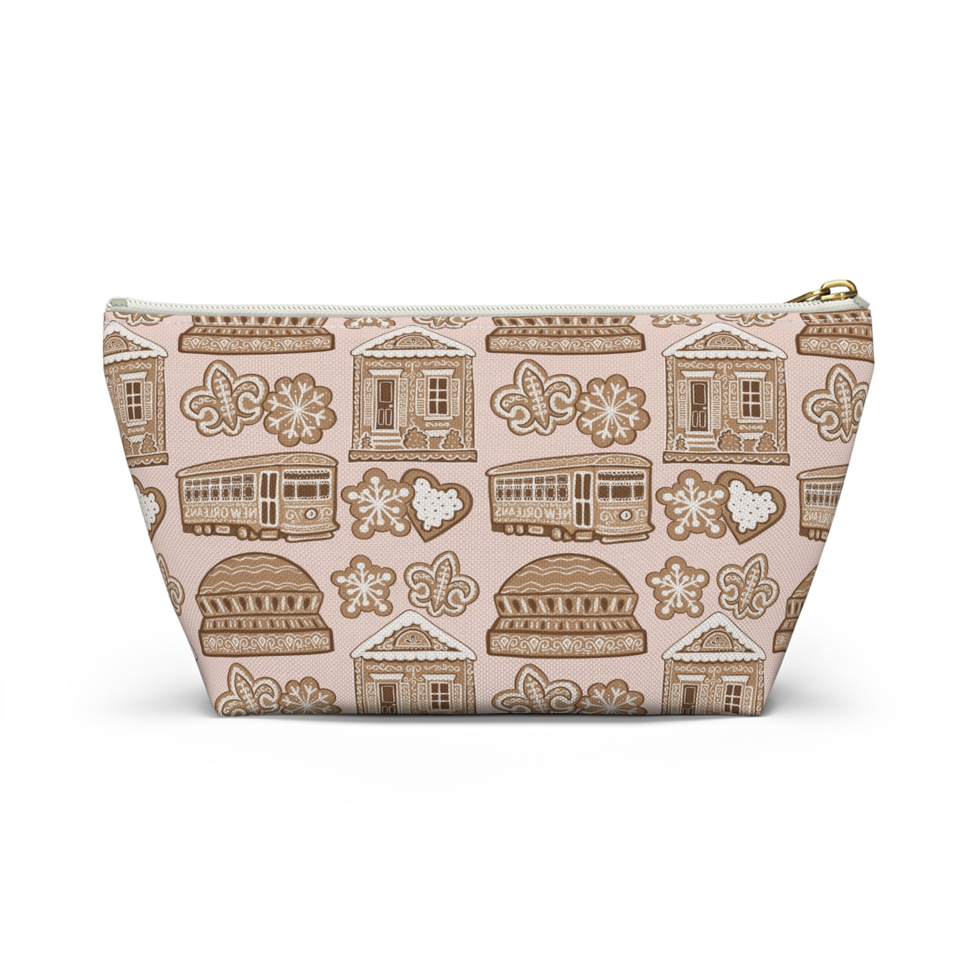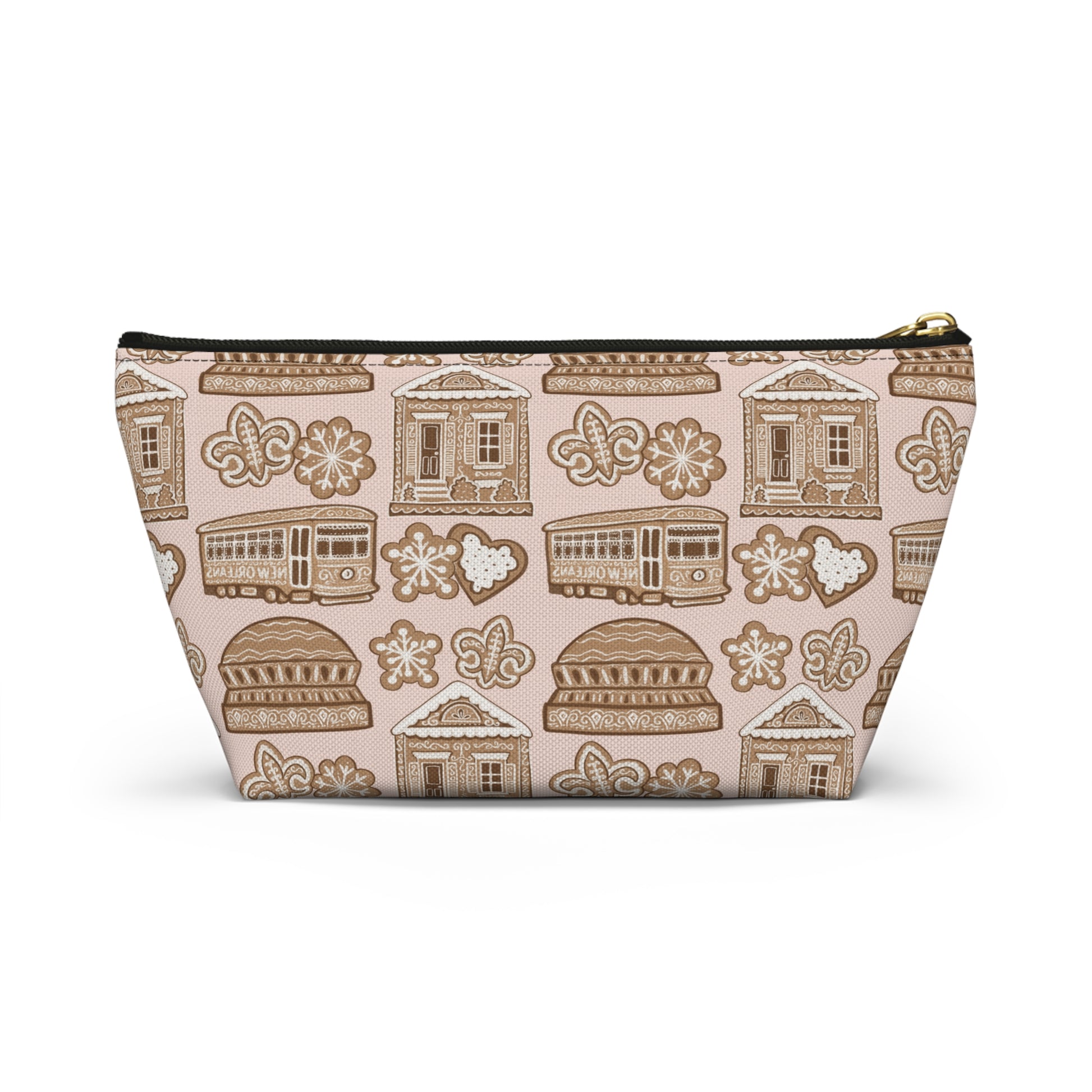 New Orleans Holiday Icons accessory pouch | streetcar fleur-de-lis dome Gingerbread pattern